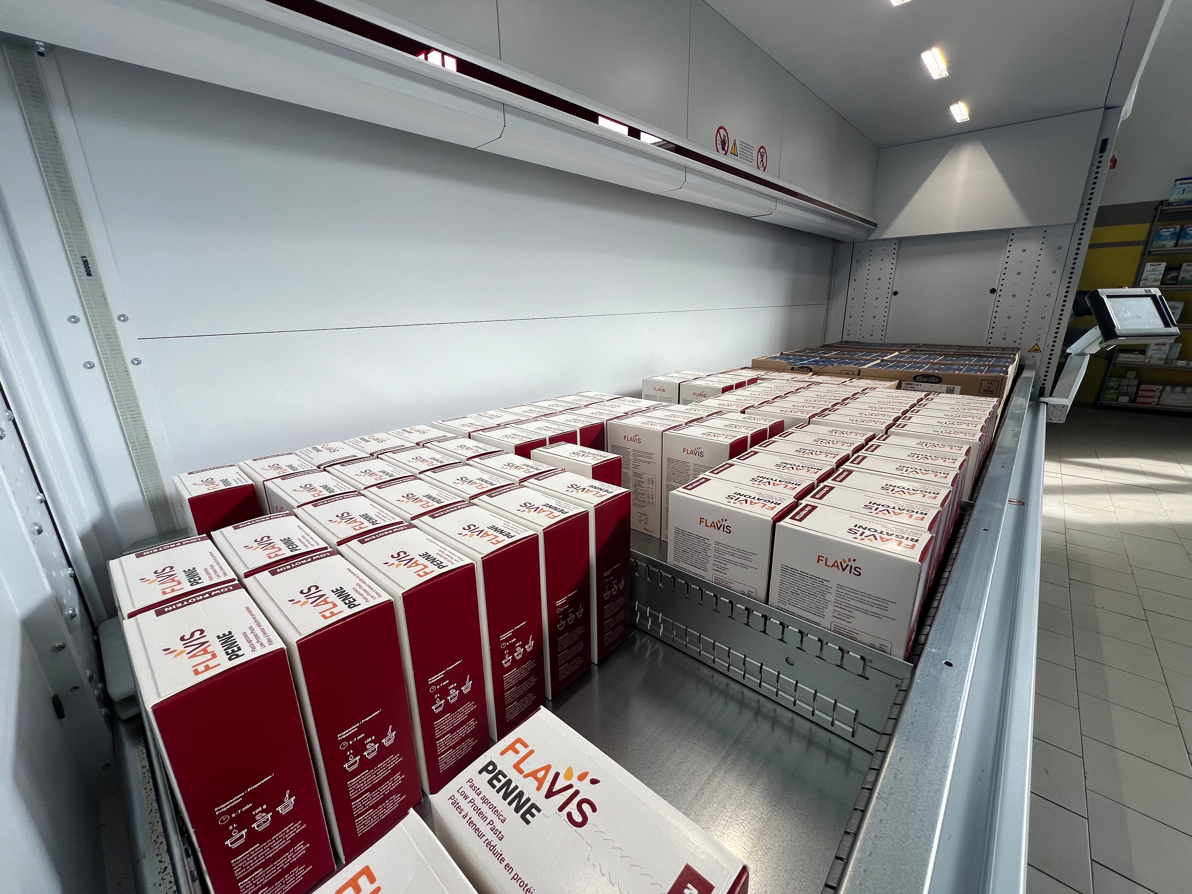 - Stoccaggio in ampia area a temperatura controllata, attrezzata con scaffalature, drive-in e la recente installazione di magazzini automatici verticali: sistema Modula System Lift.